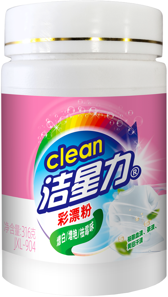 主要成分为过氧碳酸钠、表面活性剂,是释氧型漂白剂,溶于水后能生成过氧化氢,然后利用过氧化氢在碱性溶液中生成的过羟离子进一步水解,生成能破坏色素基团的初生态氧,从而使色渍消失。其对织物的漂白较温和,对织物起到保护作用,不会损伤织物,可令白色织物更白,彩色织物色泽更鲜艳,有较好的漂白作用和杀菌作用。而且不含任何磷和荧光剂不会刺激皮肤。是居家清洁的理想产品。