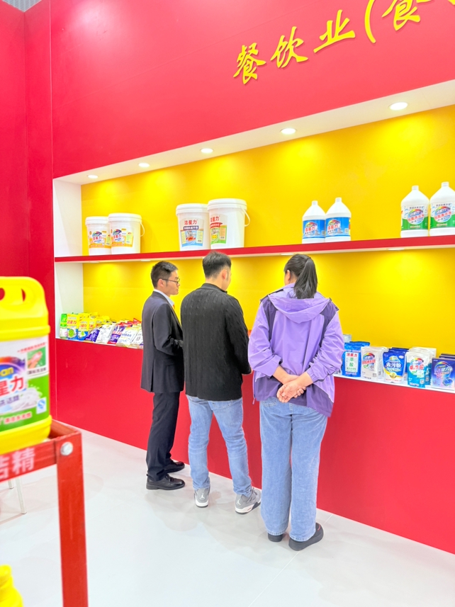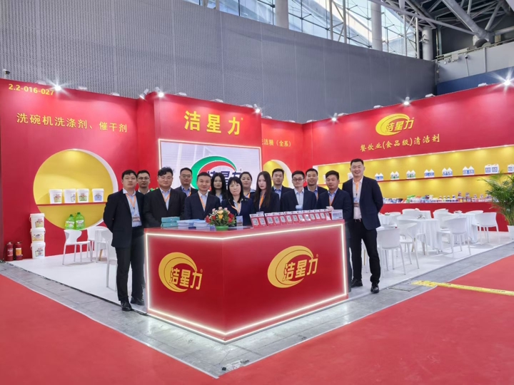 本次洁星力参展产品有王牌餐饮清洁产品——洁星力除垢剂、密胺餐具清洁粉、去污粉等,厨房油污清洁产品——除油片、油污净、洗洁精,卫生间清洁产品——卫生间清洁液、草酸洁瓷粉、卫生间清洁粉等。同时还有洁星力新推出的洗碗机专用洗涤剂和烘干剂。